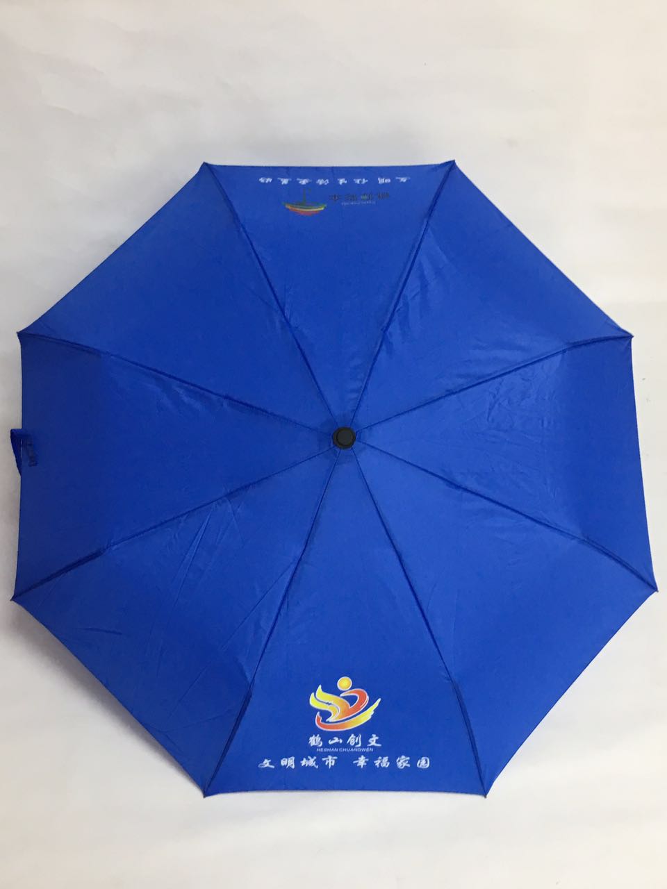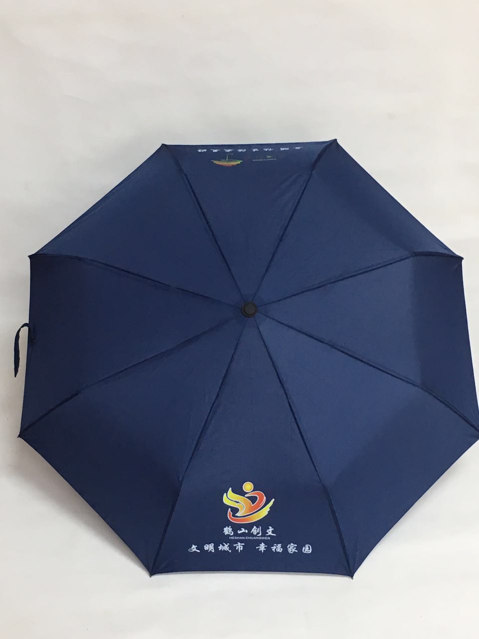 印刷在伞面上的简单标语洋溢着对鹤山市创文活动的热情和憧憬